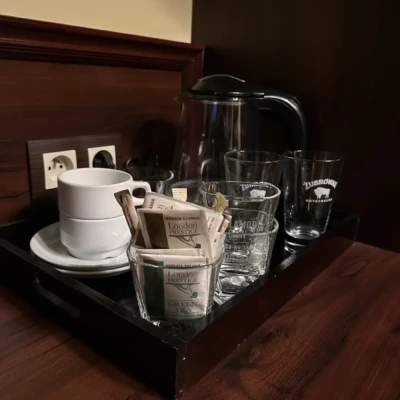 Czajnik, zestaw powitalny (kawa, herbata, woda mineralna)