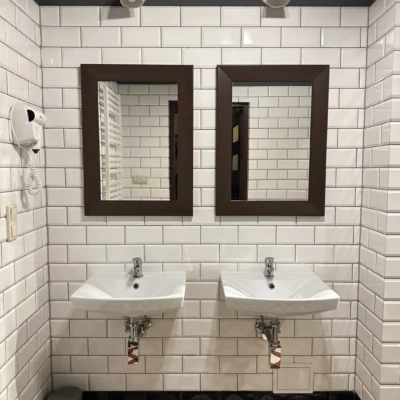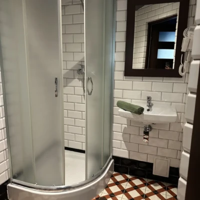 Każdy z pokoi posiada własną łazienkę, suszarkę do włosów, zestaw kosmetyków oraz ręczniki.