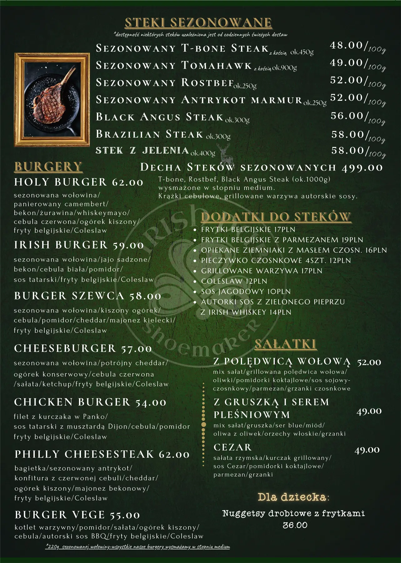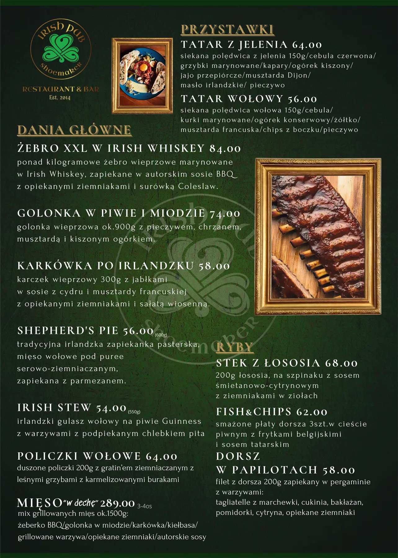 Od Guinness’a, przez tradycyjne potrawy jak: Fish&Chips, Shepherd’s Pie czy sezonowane steki, po atmosferę, która łączy gości w rozmowach i śmiechu – tworzymy przestrzeń, w której każdy czuje się jak w domu.